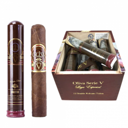 Xì gà Oliva Seri V Double Robusto đã từng là một loại cigar phiên bản giới hạn được phát hành hàng năm với số lượng hạn chế, giờ đây nó đã trở thành một loại xì gà sản xuất thường xuyên. Serie V Double Robusto kết hợp một sự pha trộn phức tạp của tobaccos Nicaragua với việc bổ sung ligero Thung lũng Jalapa phong phú và thịnh soạn. Nếu điều đó vẫn chưa đủ tốt, Serie V Double Robusto có một loại bao bì Sanuro nguyên chất cao cấp, đã nhanh chóng trở thành một trong những loại vỏ bọc nóng nhất trong ngành công nghiệp cigar vì hương vị maduro ngọt và cay đậm đà.