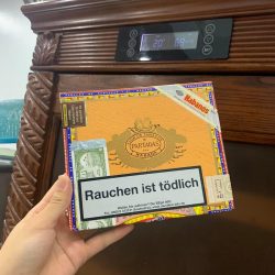 - Khi tìm mua xì gà Partagas đều đầu tiên bạn nhìn thấy là vỏ bao bì bên ngoài Vỏ gỗ đẹp chi tiết , tem rõ ràng , có thể them thực tế ảnh hộp xì gà Partagas Mille Fleurs Nhập khẩu chính hãng tại Shopxiga